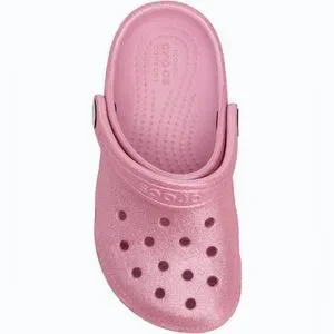 Quench their thirst for adventure with the sparkly Classic Glitter Clog from Crocs! Engineered for lasting outdoor comfort, the Classic Glitter Clog features fully molded and easy to clean Crocs Croslite™ foam construction in the iconic clog silhouette, allover shimmer effect, vented forefoot for breathability and easy drainage of water and debris, heel strap for a secure fit, and lightweight, non-slip outsole for flexible traction.