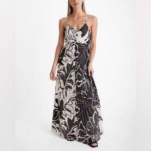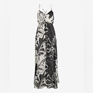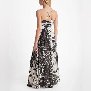 NWT Printed V-Neck Pleated Cross Back Maxi Dress