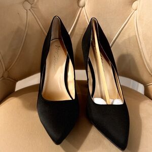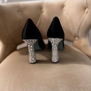 Sophisticated Betsey Johnson BRAND NEW Corie black satin pumps. 4-inch jeweled block heel. Classic pointed silhouette for a chic look. Dressy and eye-catching for all occasions. Dress up or dress down.
