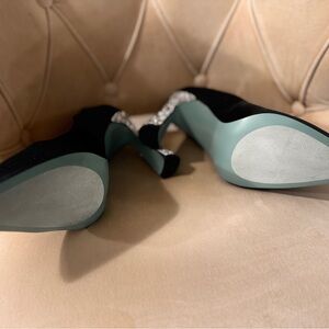 Betsey Johnson BRAND NEW Corie Black Satin Pumps with Rhinestone-Encrusted Heels