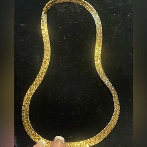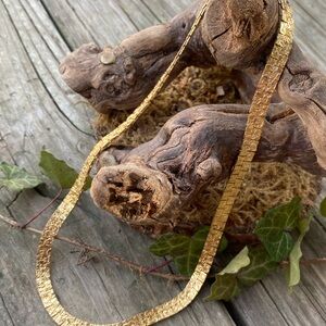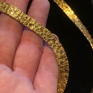 ✨ Elegant insanely shiny gold tone nugget textured herringbone necklace. Smooth, flexible design sits comfortably at the collar. Polished gold finish adds a refined, versatile touch to any outfit. Secure clasp for everyday wear.