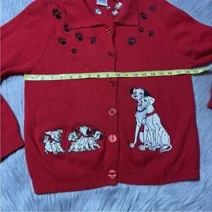 Vintage 90s Disney Store Red 101 Dalmatians Cardigan Sweater