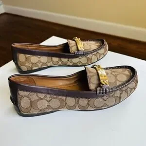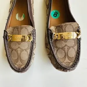 COACH Signature Jacquard Driving Loafers Brown Monogram Gold Hardware Size 8