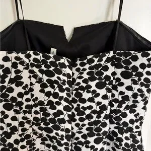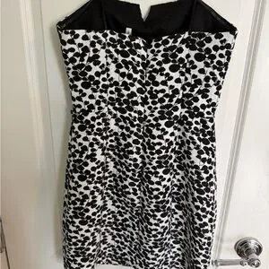 Elegant strapless dress featuring a striking black and white design. Ideal for stylish outings.
