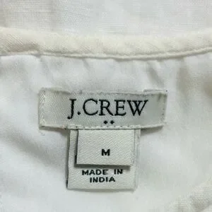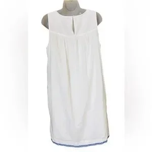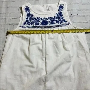 J. Crew Embroidered Dress Size M White Blue Linen Cotton Lined Beachy Boho