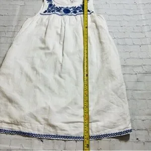 J. Crew Embroidered Sundress Size M White Blue Linen Cotton Lined Beachy Boho