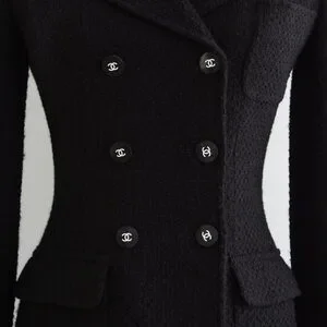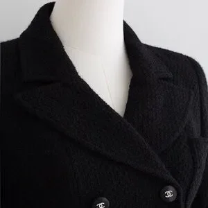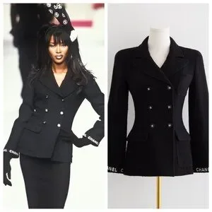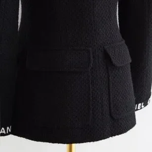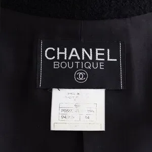 From the Fall/Winter 1995 collection, this black tweed jacket reflects the strong, tailored mood of mid 90s Chanel under Karl Lagerfeld.
