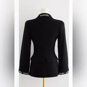 Chanel Vintage F/W 1995 Black White Logo Tweed 95A Jacket