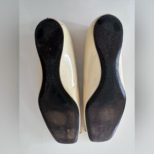 These are 💯 authentic Roger Vivier ballerinas light yellow patent leather, featuring the brand's signature buckle.