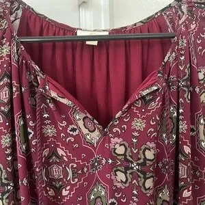 Burgundy Patterned 3/4 Sleeve Maxi Dress