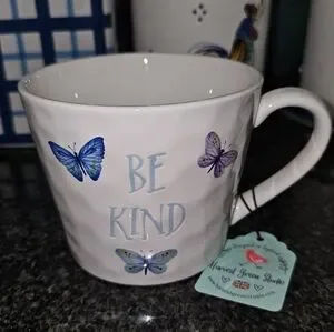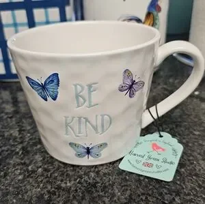 White Mug with Butterfly Design - Be Kind