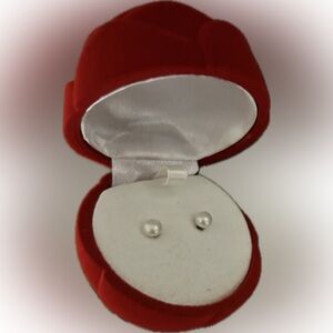 Avon 2005 Rose Jewelry holder Classic freshwater pearl stud earrings by Avon. Nestled in a vibrant red box. Ideal for elegance.