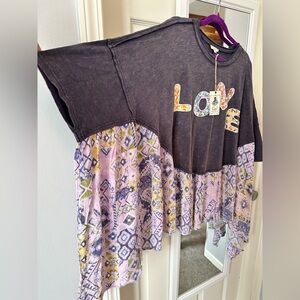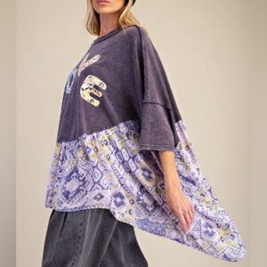 NEW🩶Easel Oversized Solid and Mixed Print LOVE Patched Top Small Ash