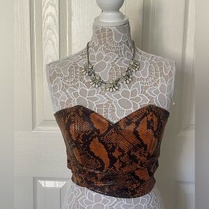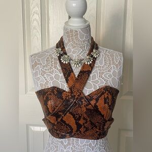 Snake Print Faux Leather Wrap Crop Top Urban Outfitters Medium