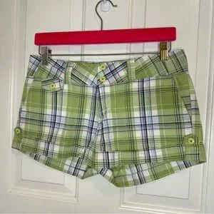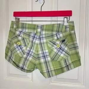 Y2K OTB Green Blue White Plaid Mini Short Sz 6 Scene Mcbling Indie Skater 2000s