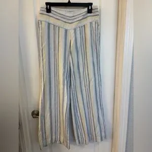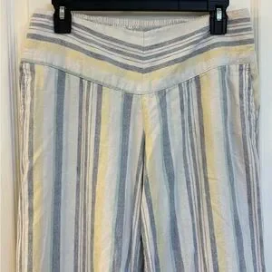 Ladies Striped Nautical Wide-Leg Pants in Blue, Yellow & Cream Size Medium