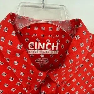 Cinch Red Geo Print Rodeo Western Button Front Shirt Mens Size XL Long Sleeves