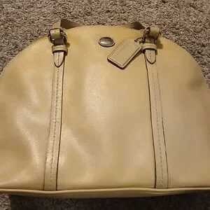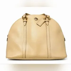 ✨ Elegant Coach dome satchel in a gorgeous cream gold / champagne metallic shade with a subtle shimmer. Such a beautiful neutral that pairs with everything!
