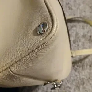 Coach Peyton Saffiano Leather Dome Satchel Cream Gold Champagne Metallic Shoulder Bag