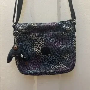 Kipling Ciro Crossbody Bag Navy Blue With Floral Pattern 8 X 9"