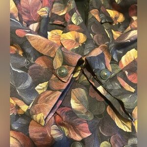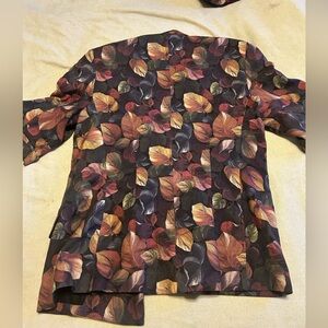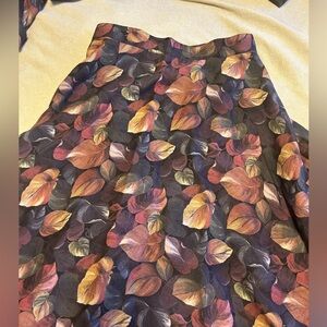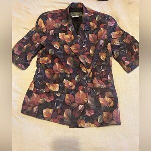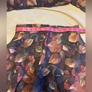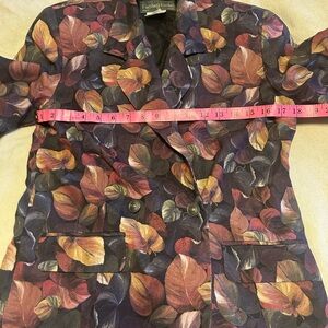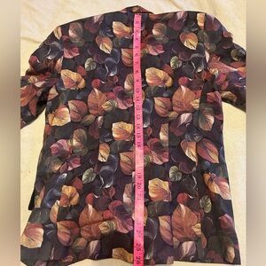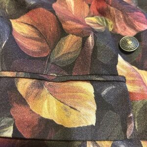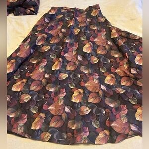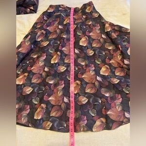 Vintage 2 piece wool set. Flared wool skirt (lined). Button zipper closure. Labelled size 12, but please note approximate waist 14”. There is no stretch. Approximate length at back in photos. Wool is light weight. Floral/leaf pattern in earth tones. Jacket is above the elbow sleeve length. Button front. It has sewn in shoulder pads. Please see photos for approximate pit to pit and length at back. This was a boutique store on Yonge St in Toronto. Great vintage condition.