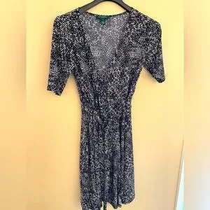 Lauren Ralph Lauren dress size 10 like New, colors black and white, wrap around dress