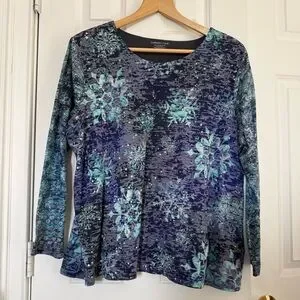 Coldwater Creek Women's Blue Floral Top Size 2x