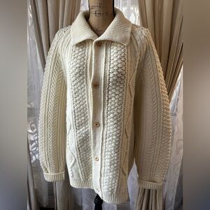 Oobe Brand vintage collared fisherman cable knit wool cardigan sweater