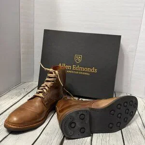 Allen Edmonds Higgins Mill men lace up boots. Size 10.5B. Style #7563. Color natural. Very good condition, gently worn.
