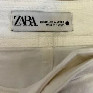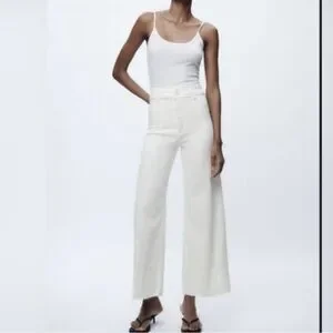 Excellent condition ZW Mariner High-Waisted “straight” wide leg jeans from ZARA. Super flattering. Raw hem. Back pockets. White or ecru color.