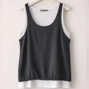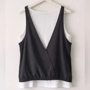 Mint Velvet Layered Tank Top M Charcoal White Double Layer Sleeveless Blouse