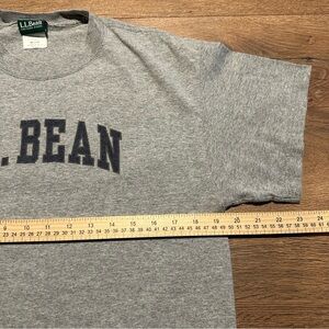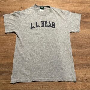 Classic L.L. Bean short sleeve tee. Heather gray fabric with bold navy arched logo. Soft feel and simple collegiate style. Easy everyday wear. Size M. No stains or holes