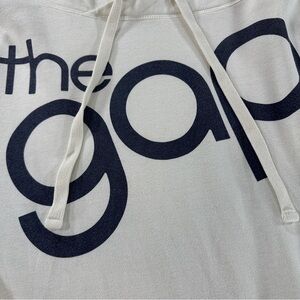 GAP Off-White with Navy Logo Graphic Pullover Hoodie Sz M