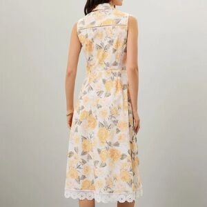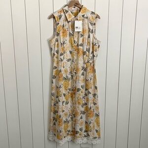 This Rachel Parcell dress features a cheerful floral print with a delicate lace hem, lending a fresh and feminine vibe. Pair it with simple sandals and a tan shoulder bag for a polished summer look.