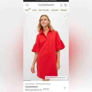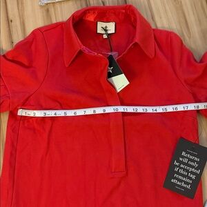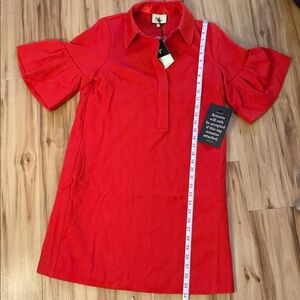 Vibrant red short sleeve dress with soft ruffle detail on the sleeves. Has pockets. NWT! Currently on Tnuck site for $79. Purchased in sale for $39. Nothing wrong with it, just too big