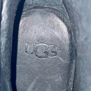 UGG Black Suede Ankle Booties with Gold-Tone Buckle Detail