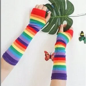 Pair Rainbow-Colored Arm Sleeves Fingerless gloves arm sleeves one size