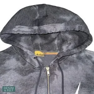 Aviator Nation Hand Dyed Bolt Zip Hoodie Vintage Charcoal Lightning XS Lounge