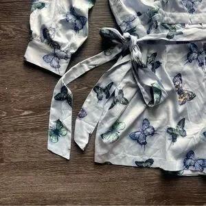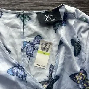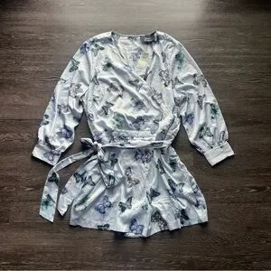 NWT Nina Parker Trendy Plus Size Blue Butterfly Satin Romper