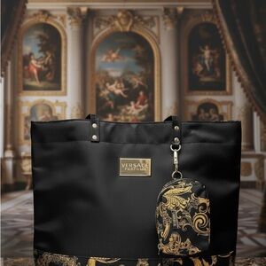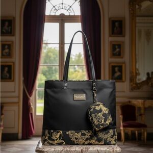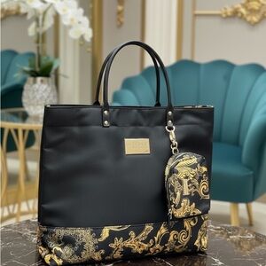 Versace Parfum Black & Gold Weekender Tote Bag with Detachable Coin Pouch