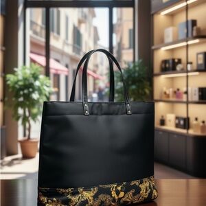 Elevate your travel game with this Versace Black & Gold Weekender Tote, a stunning blend of high-fashion heritage and modern utility. Originally released as an exclusive promotional piece, this spacious tote captures the opulent essence of the Versace house, making it the perfect companion for a chic getaway or a sophisticated daily commute.