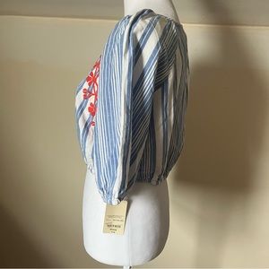 St John’s Bay Striped Floral Embroidered Crop Top size Medium