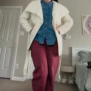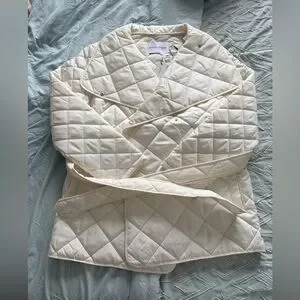 Rebecca Minkoff Cream Quilted Light Weight Puffer Jacket Tie Waist Size L NWT