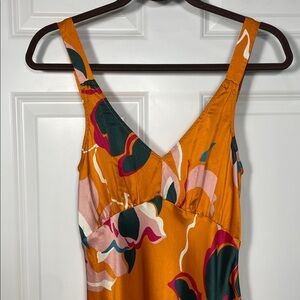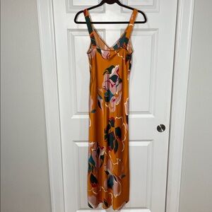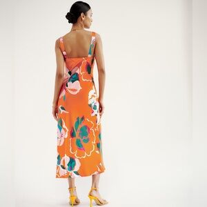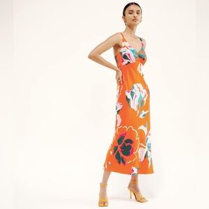 Reformation Daytona Silk Dress Medium Sleeveless Orange Floral Midi V Neck