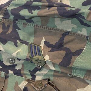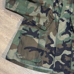 Vintage 90s U.S. Army Woodland Camo Cold Weather Field Jacket Medium Long Grunge