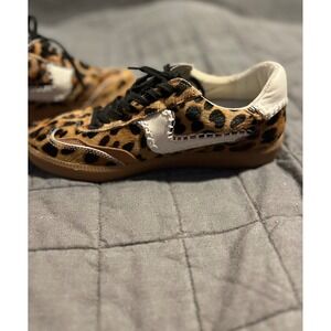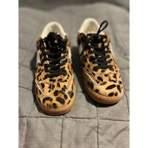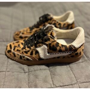 Dolce Vita Leopard Calf Hair Sneakers Tan Black White Leather 0537B Womens 8-9