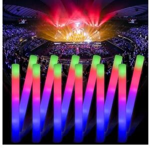 100 pieces of bright multicolor LED foam wand for playful light effects. Features smooth foam grip and vibrant blue, green, red, and purple illumination. Simple one-button control for instant color changes and steady glow. Lightweight foam construction for parties or wedding after parties