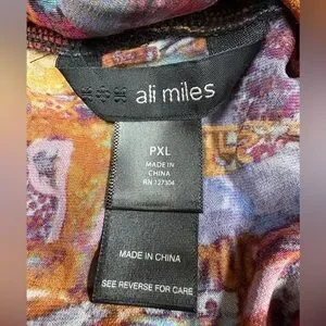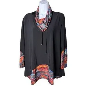 Ali Miles Womens Art To Wear Cowl Neck Top Size PXL Multicolor Long Sleeve Boho