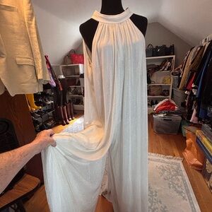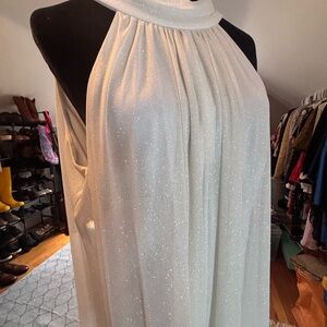 MSK High-Neck Sparkle-Mesh Wide-Leg Jumpsuit Sz Large