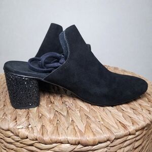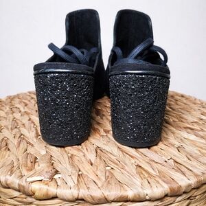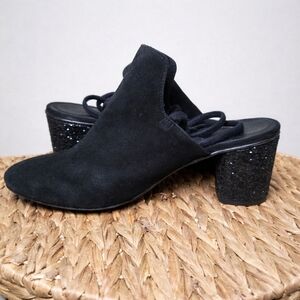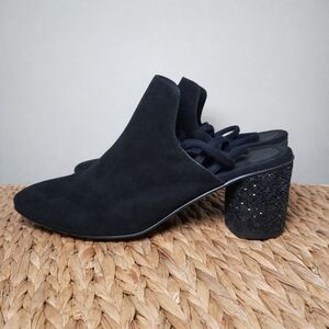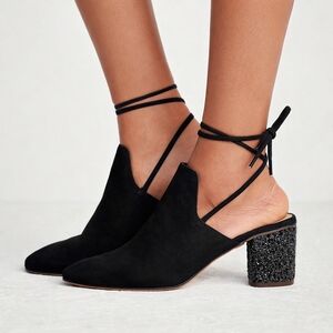 Free People Sparkler Mule Glitter Heel Black Suede Lace Back Block Heel Size 40